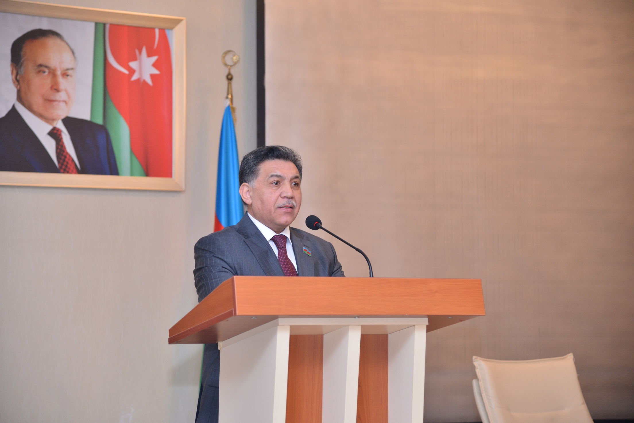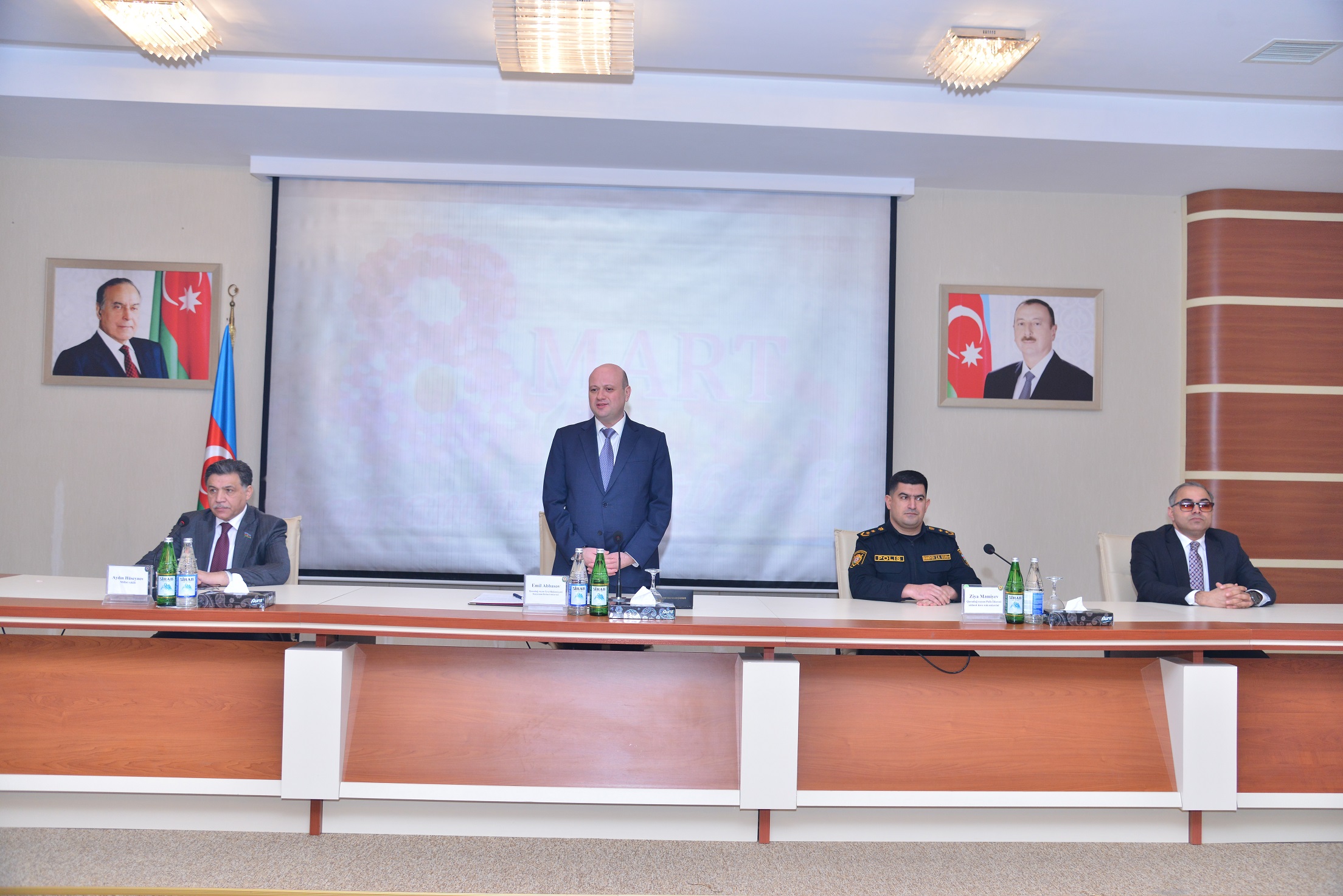 Sonra Milli Məclisin deputatı Aydın Hüseynov çıxış edərək ilk öncə başda şəhid anaları, övladları, xanımları olmaqla bütün qadınları 8 Mart Beynəlxalq Qadınlar günü münasibətilə təbrik edərək xoş arzu və diləklərini iştirakçılarla bölüşmüşdür.