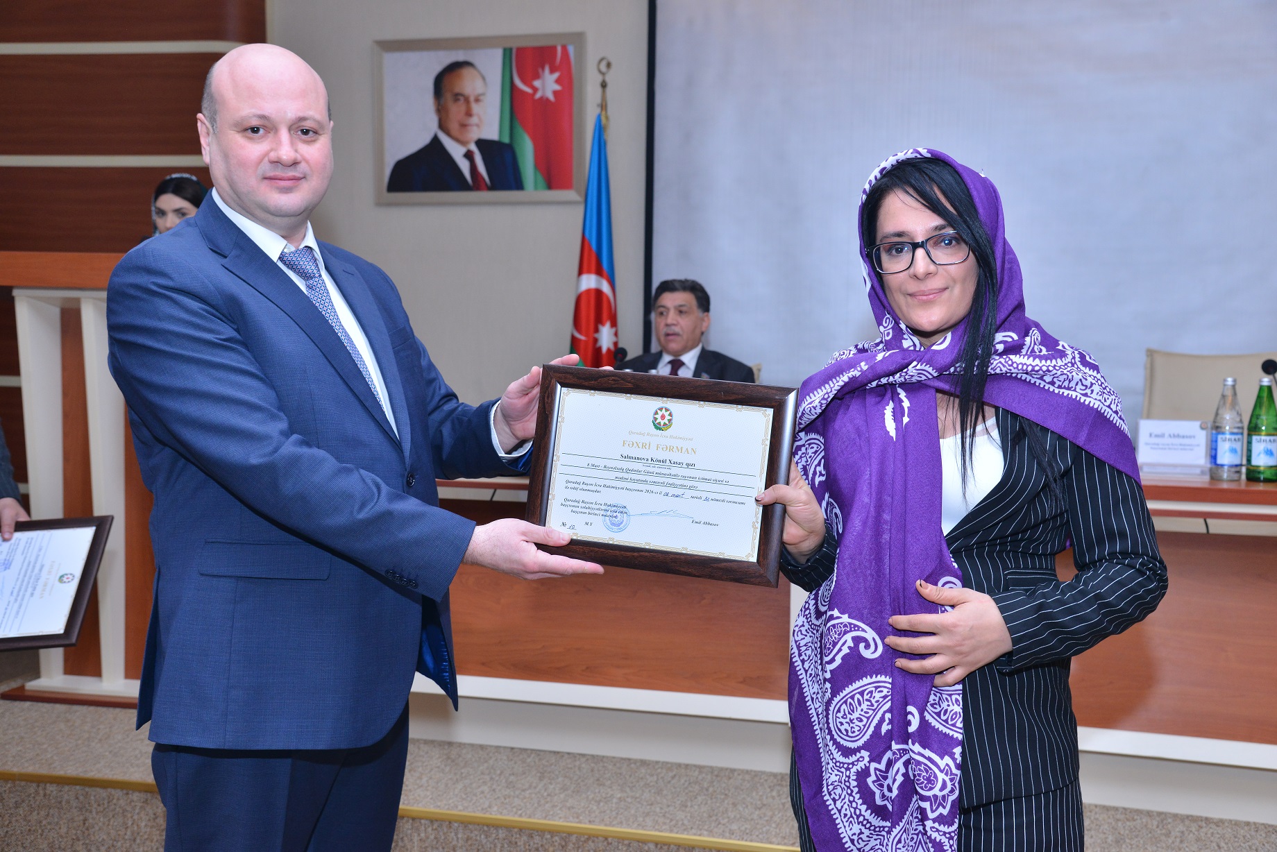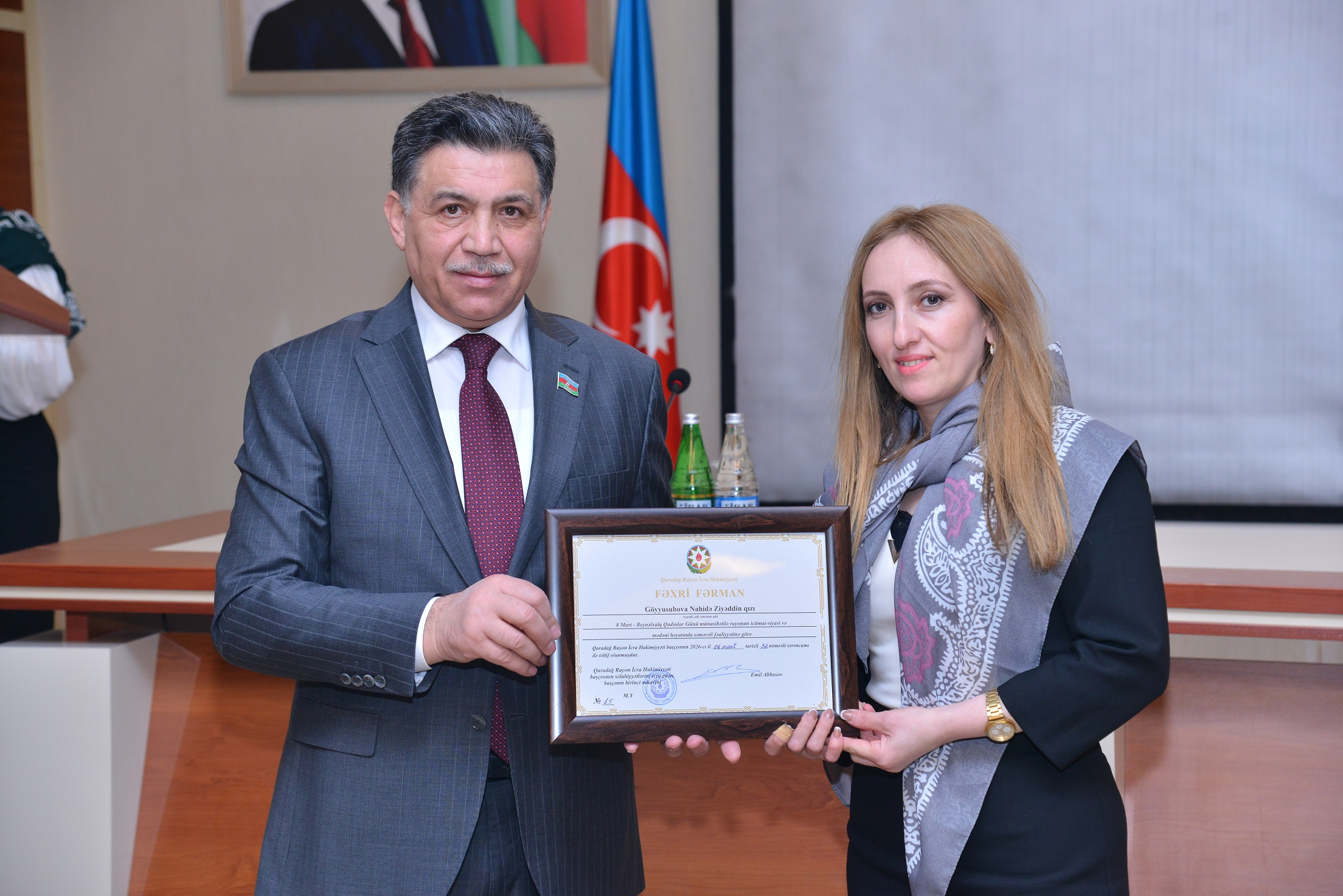 Tədbirin sonunda Qaradağ Rayon İcra Hakimiyyəti başçısının səlahiyyətlərini icra edən, başçının birinci müavini Emil Abbasov tərəfindən rayonun ictimai-siyasi həyatında öz fəallığı ilə fərqlənən xanımlara fəxri fərman və hədiyyələr təqdim olundu.