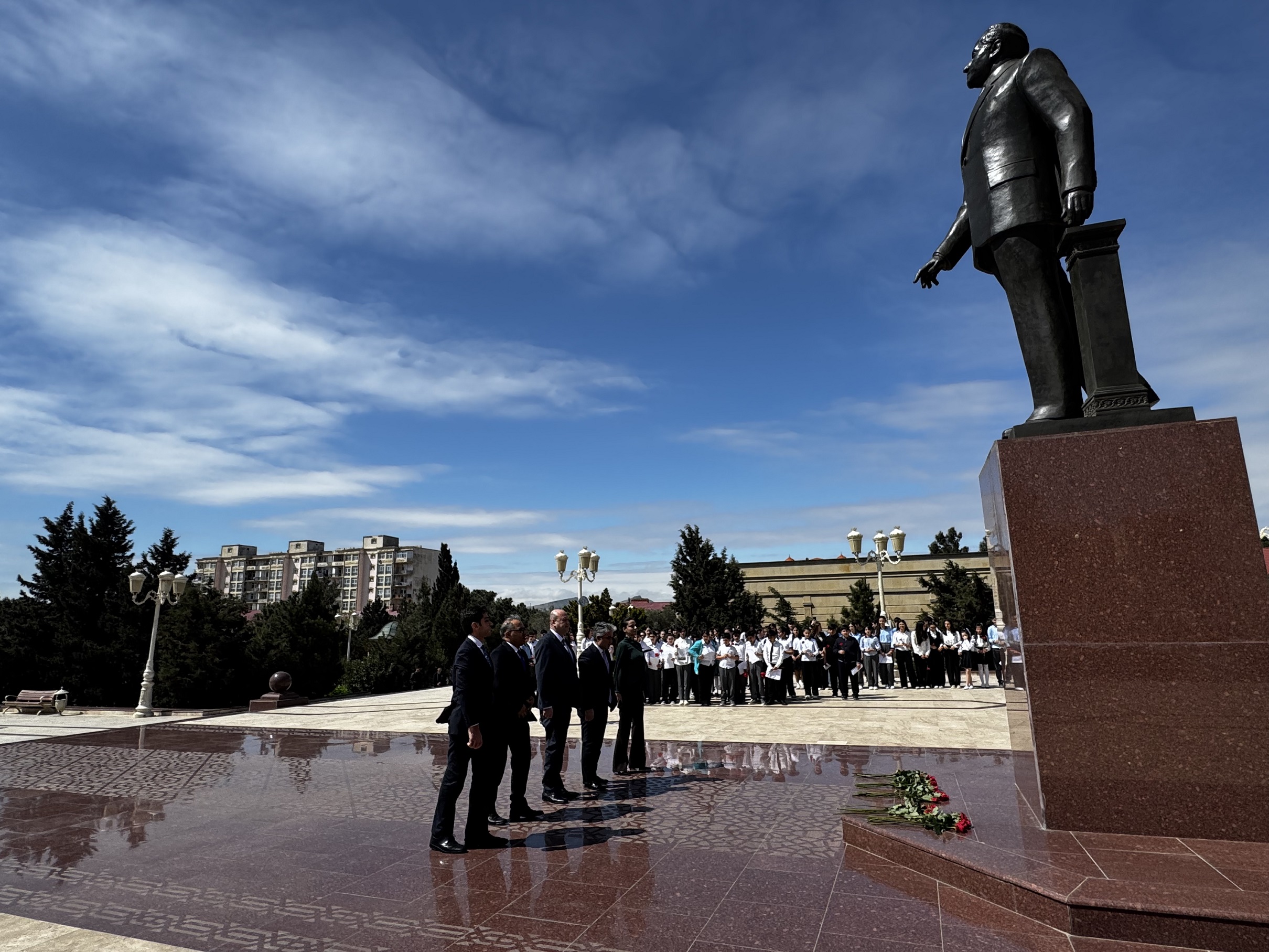 Tədbir iştirakçıları Heydər Əliyev adına parkda Ulu Öndərin abidəsini ziyarət edərək önünə gül dəstələri düzüb, dahi şəxsiyyətə hörmət və ehtiramlarını bildirdilər.
