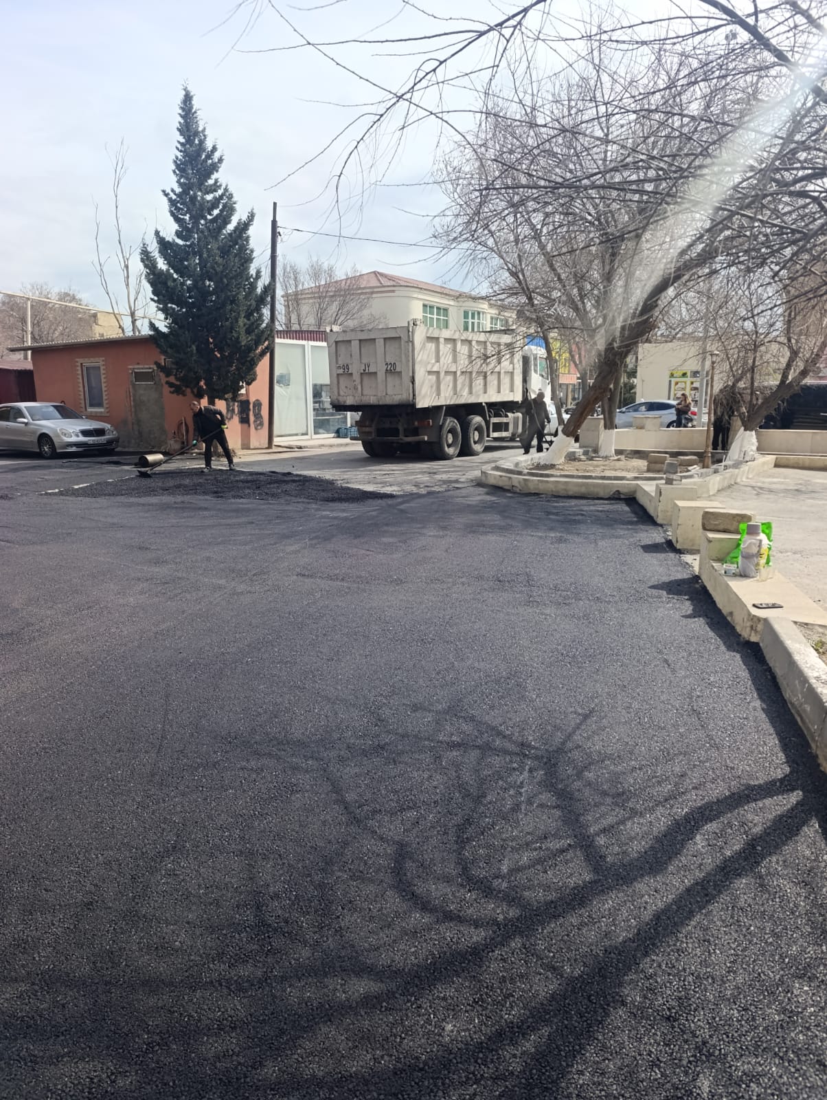 Qaradağ rayonu Sahil qəsəbəsində asflat örtüyü salınır