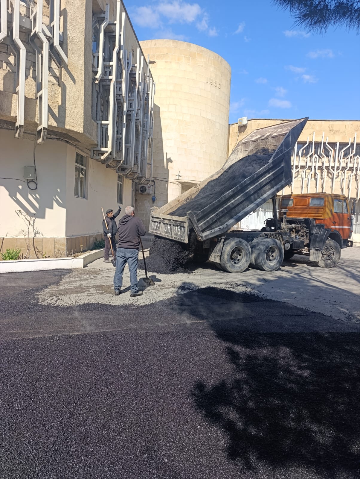Qaradağ rayonu Sahil qəsəbəsində asflat örtüyü salınır